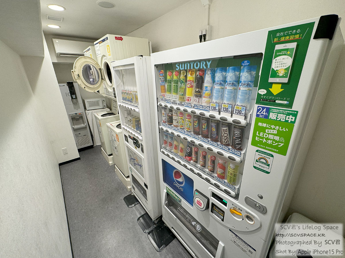그런 편의시설은 2층 별도 공간에 이렇게 따로 있습니다. 세탁기, 자판기, 제빙기, 전자레인지.
