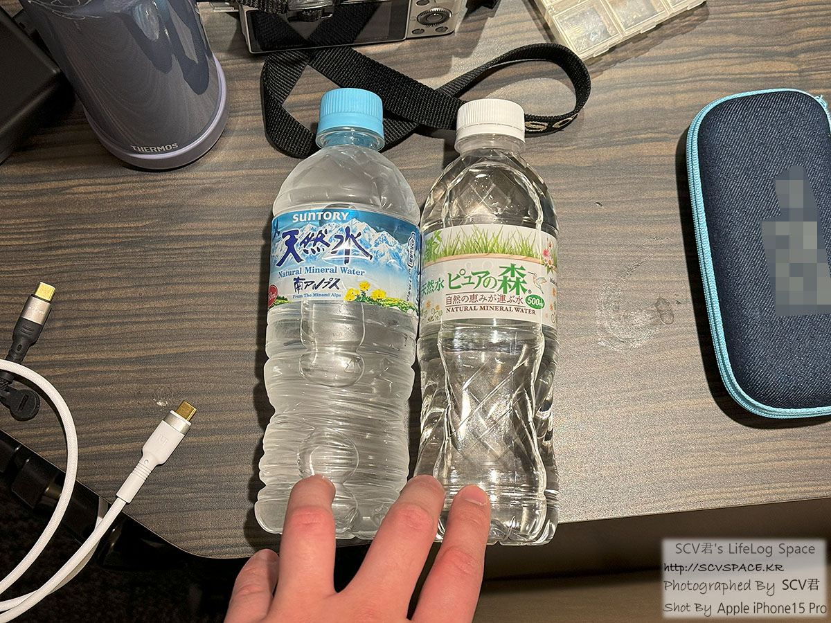 바로 위 사진의 2층 갔다가 물 하나 더 사왔습니다. 오른쪽이 체크인시에 받은 회원 특전 음료(물 500ml)이구요.