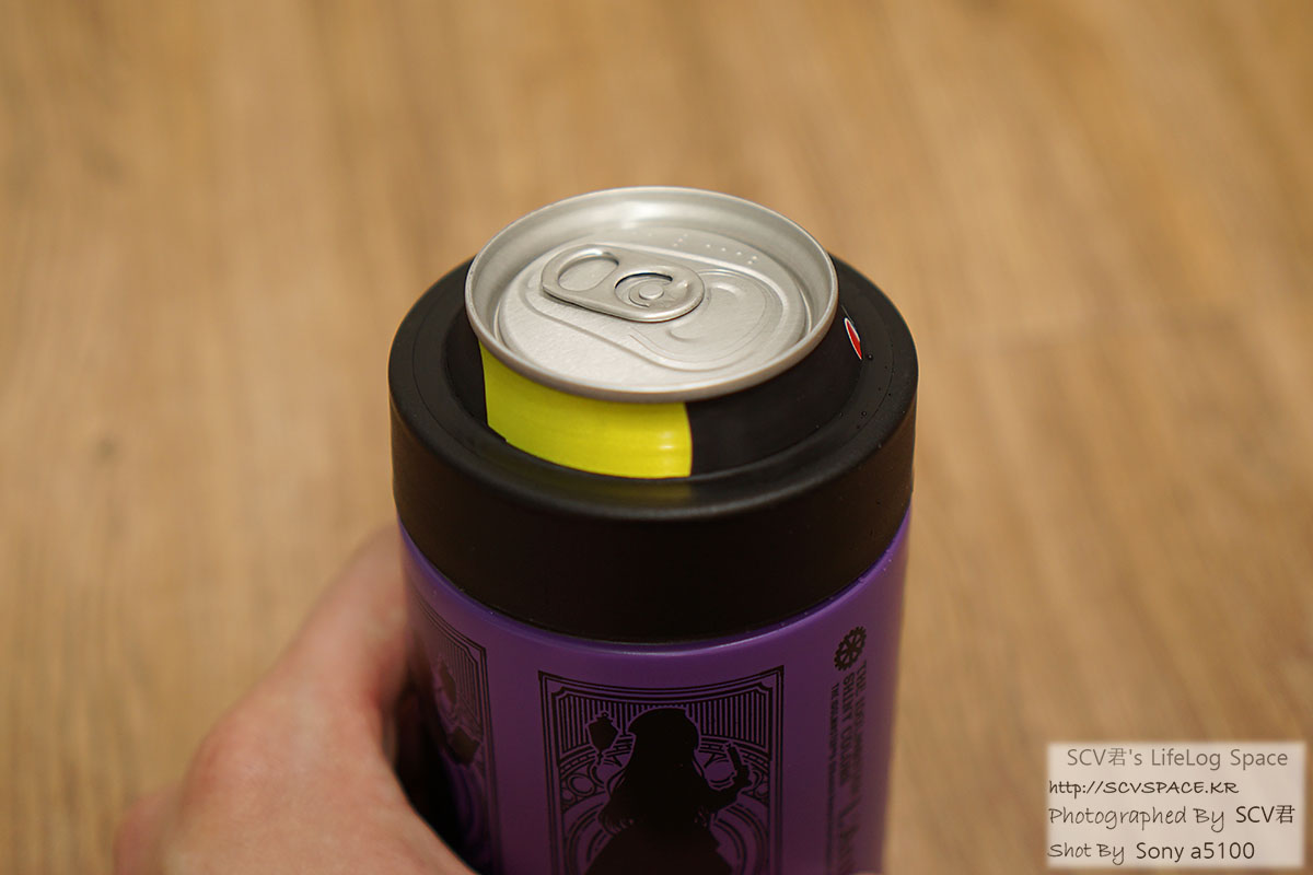 이렇게 안쪽은 마치 물 넣어 마실 수 있는 텀블러처럼 생겼지만 355ml 캔이 딱 맞는 공간.