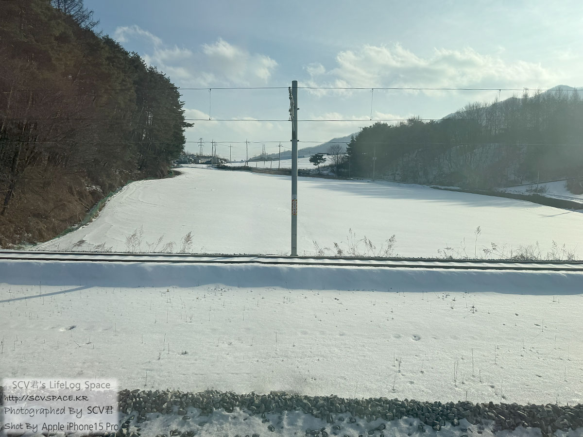 요 즈음 한창 영동지방(산간, 평지) 에는 눈이었습니다. 터널 몇개 지나니 이렇게 바깥이 온사방 눈이더군요.