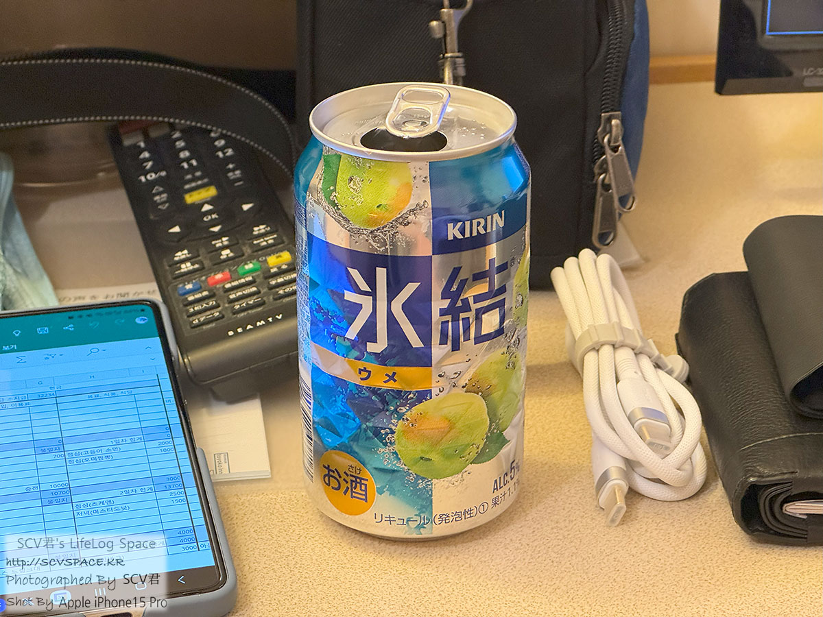 자기 전 여행경비 정산 같은거 하면서 과일 알콜음료 한 캔.