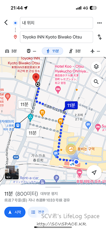 아 이 이야기를 아직 안했네요. 숙소까지는 이렇게 걸어갈 예정입니다.