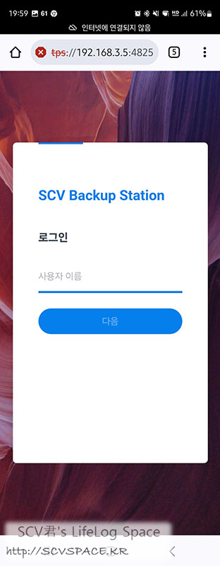 이건 설정 변경할 일이 있어서 LAN이 있는 USB-C허브를 폴드5에 물리고 IP설정 한 뒤 백업NAS DSM 로그인 페이지에 접근한 모습.