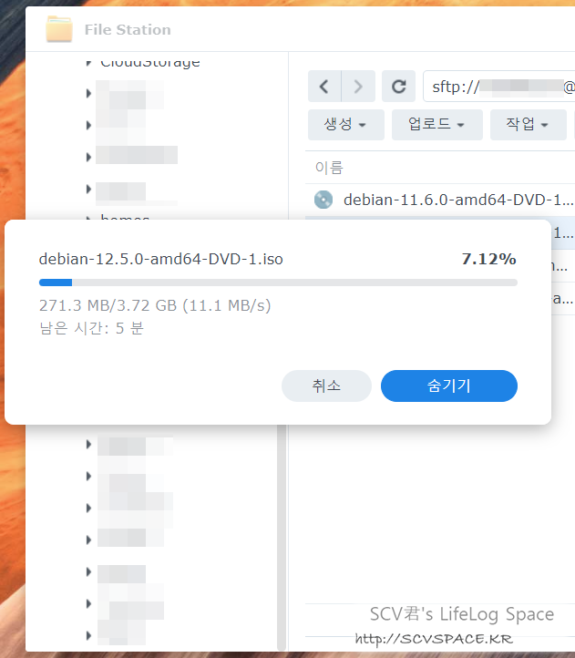 그래서 백업NAS에서 메인NAS로 FTP 접속해 파일을 복사해보니.. 느리더군요.