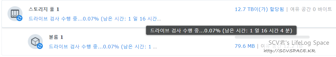 14TB 정도 되면 이 검사도 이틀 걸립니다.