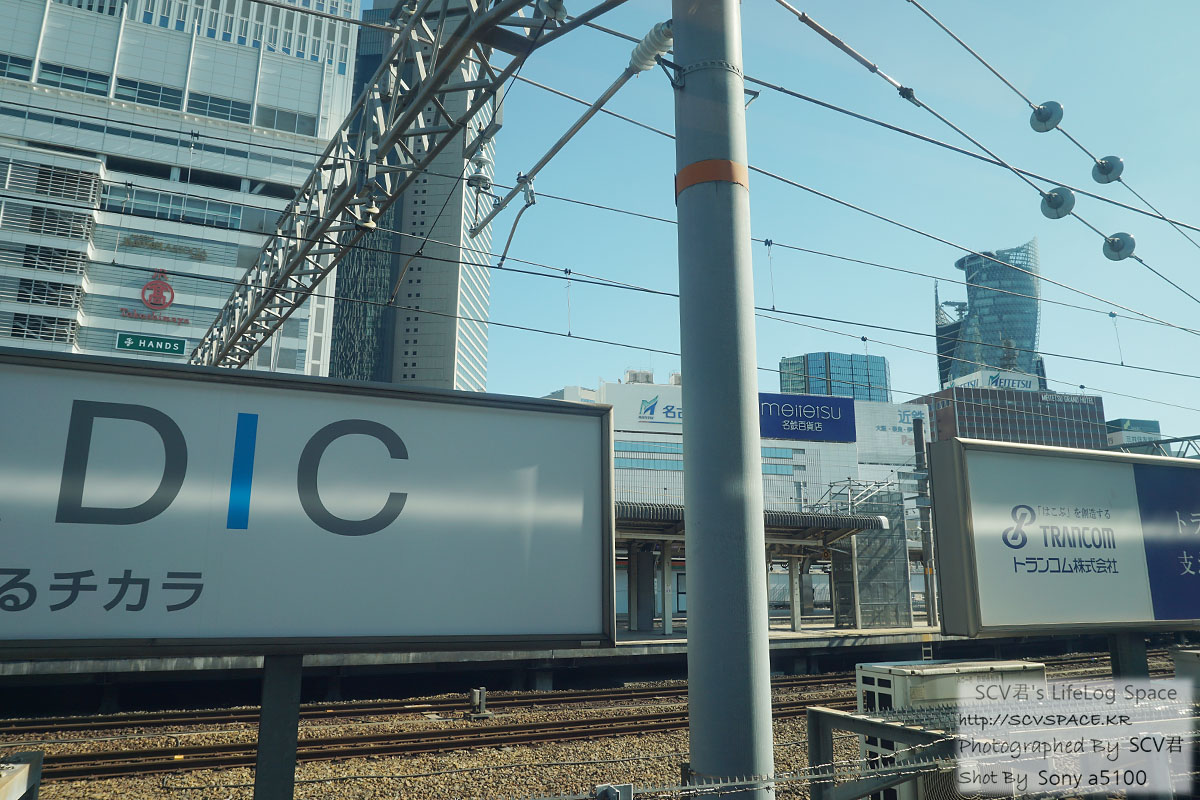 오른쪽은 나고야역 정차중 찍힌 메이테츠 백화점(名鉄百貨店)