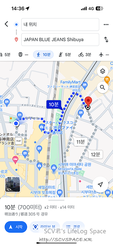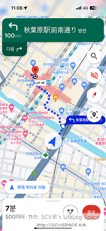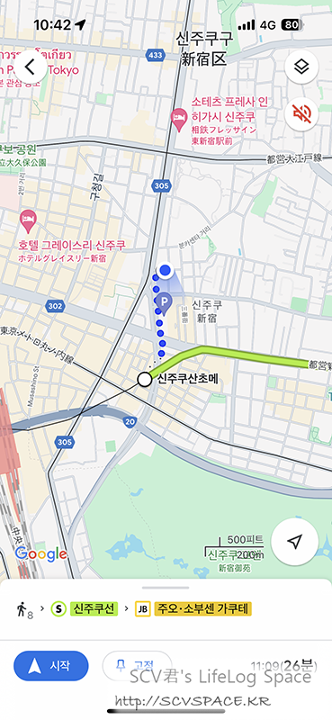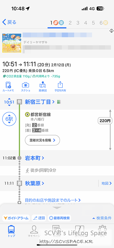 보통 역 이동하면서 트위터 타임라인을 훑는 경우가 많아서, 잘못하면 엉뚱한 길로 가니 도보 네비와 함께.