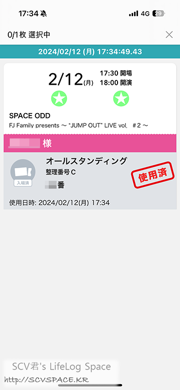 이플러스 전자티켓의 경우는 먼저 12월에 이차원 페스에서도 썼으니 이제는 조금 익숙해졌지만, 이것도 또 주최마다 활성화(사용완료 처리) 방법이 달라서 재밌더군요.