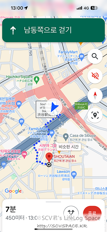 나갈 출구까지 체크한 뒤, 적당히 이쯤 도보 네비게이션은 종료.