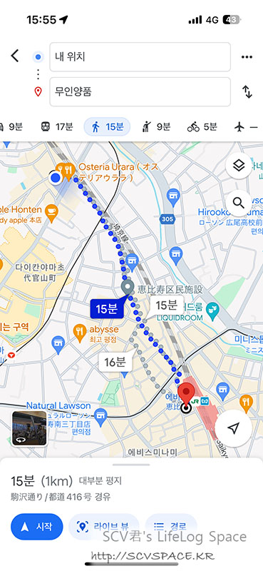 아무튼 공연 시작 전까지는 시간을 떼워야 했는데, 좀 생각하다 보니 무인양품에서도 옷을 팔았던게 떠올라서 지도 검색.