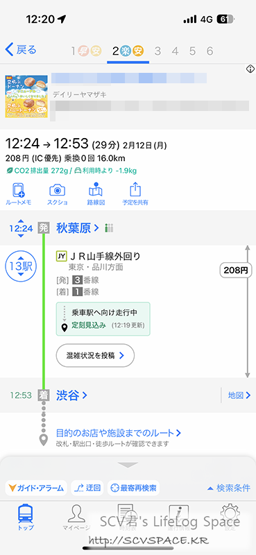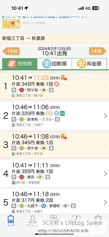 보통 역 이동하면서 트위터 타임라인을 훑는 경우가 많아서, 잘못하면 엉뚱한 길로 가니 도보 네비와 함께.