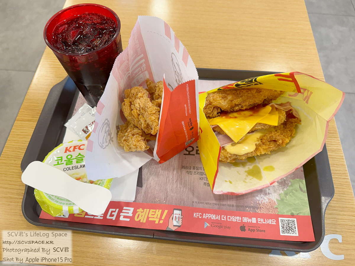 메뉴 고민하고 있는데 앱으로 KFC 쿠폰이 날아와서 간만에 들렀습니다.