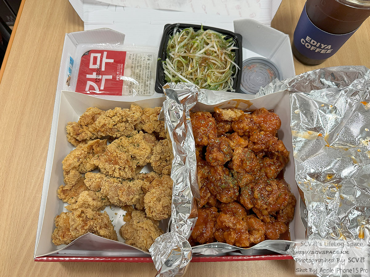 간만에 치킨 먹어야지! 하고 포장 주문한거 들고오면서, 블루 아카이브 콜라보 중이었던 이디야에서도 커피를 사왔습니다.