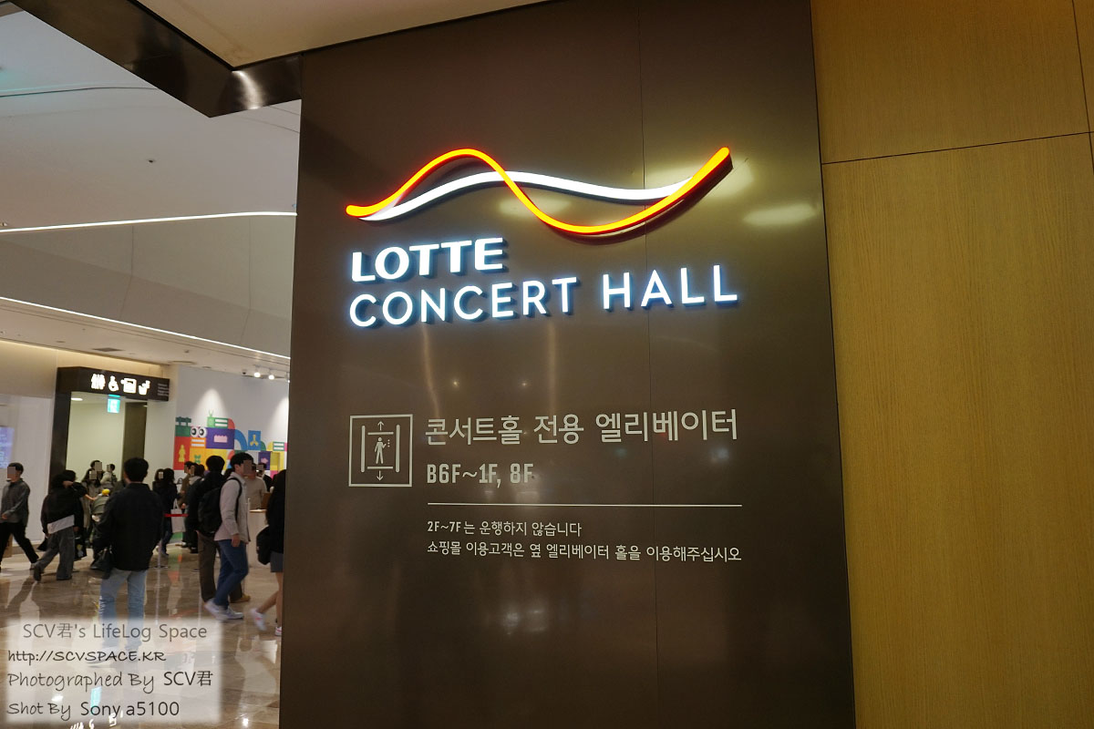 공연장인 롯데콘서트홀은 방금 지하에서 점심먹은 롯데월드몰의 8층에 위치하고 있습니다.
