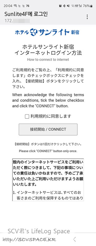 일단 호텔 무선인터넷에 접속하려면 이런식으로 연결 인증을 받아야 합니다.