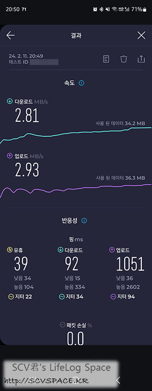 유난히 느리길래 연결된 채로 속도측정을 해본게 위 오른쪽 이미지입니다.