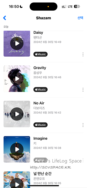 들어와서 걷는데 본인 곡은 어디가고 남자 아이돌 곡들이 올라와서 좀 피식 했는데, 계속 바뀌는 곡들을 저렇게 샤잠해보니 골고루 섞여있어서 스포티파이 재생목록 같은게 아닐까 추측해봅니다.