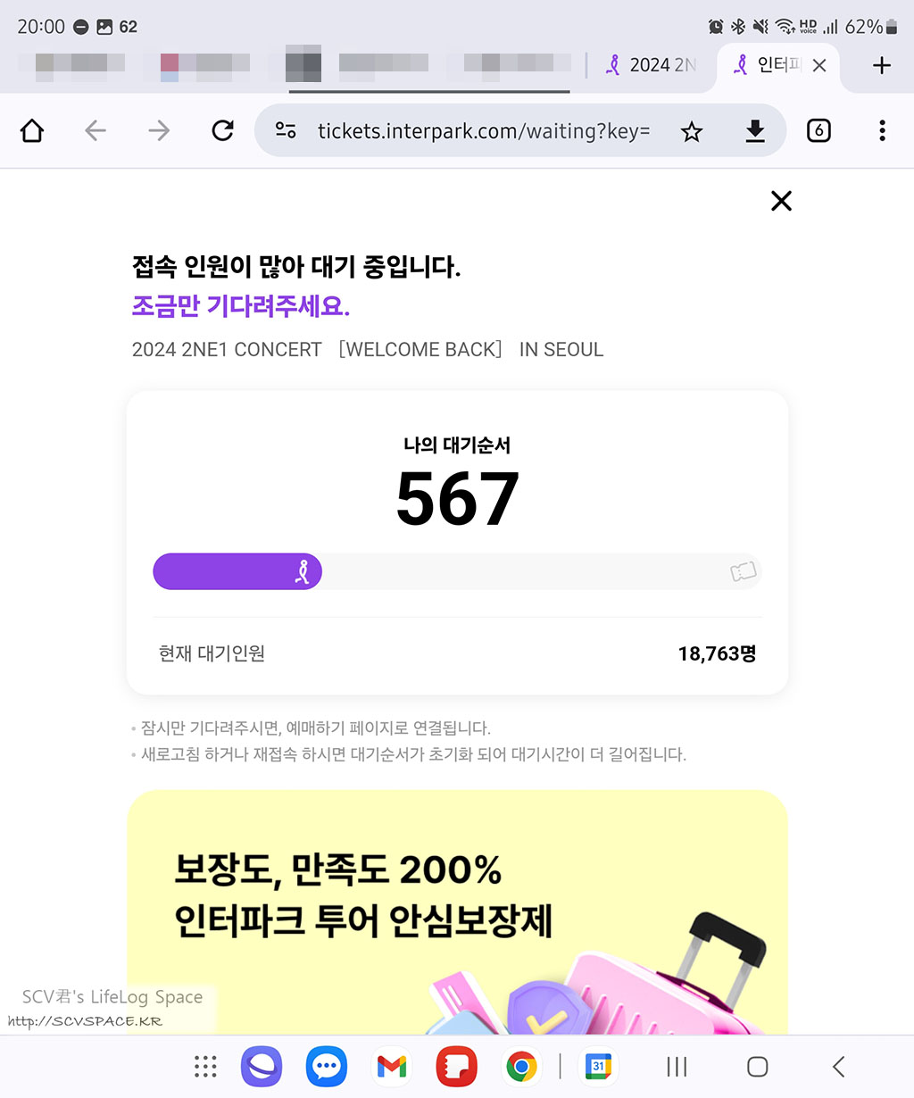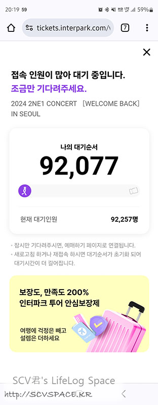 근데 아무래도 모바일 웹 쪽이, 날짜선택 전에 일단 대기열에 진입하다 보니 초반 접속에 유리한것 같더군요.