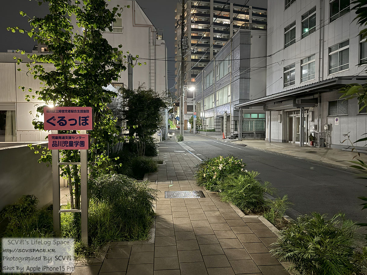 호텔 맞은편에서 횡단보도 대기하며 본 타워 맨션의 정원. (プライムパークス品川シーサイドザ・タワー)