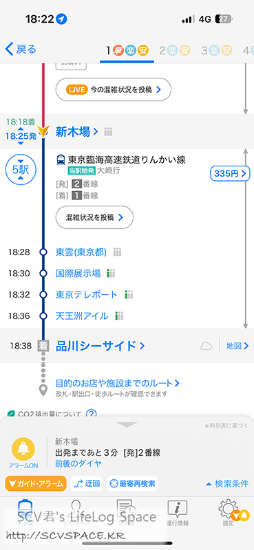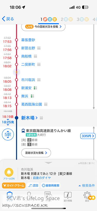 전체 경로는 이렇게 됩니다. 린카이선 타고 가다가 신키바역(新木場駅)에서 케이요선으로 갈아탈 예정.