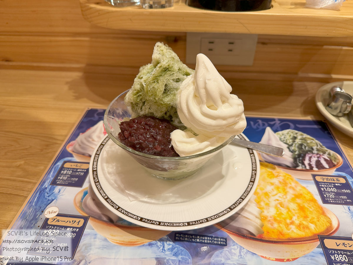 - 말차빙수 (아이스크림, 팥앙금, 연유 토핑 모두추가) 미니 - 620엔