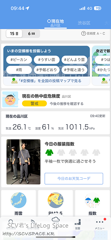 오른쪽은 한시간쯤 뒤이긴 한데, 여전히 온도는 그럭저럭이지만 습도가 은은한 특유의 날씨가 이어지고 있습니다.