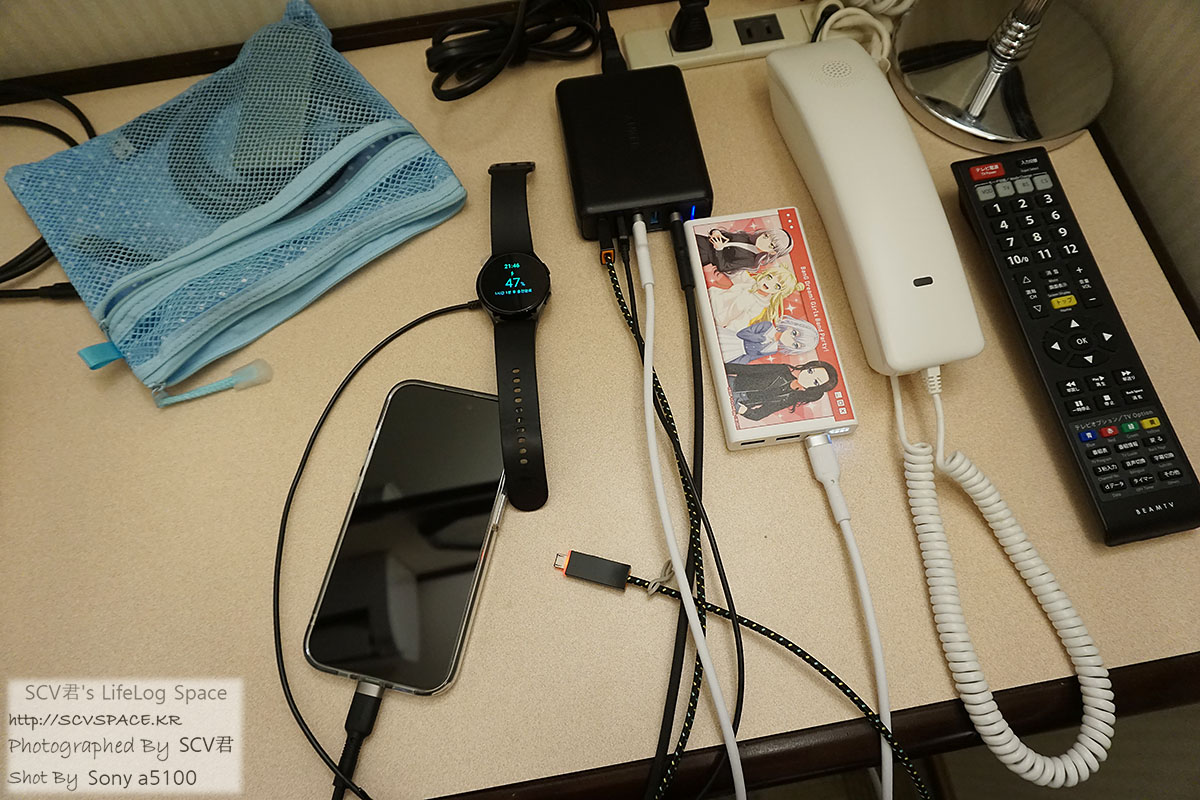 호텔에 들어와서는 일단 기기 충전들 좀 넣어놓고,