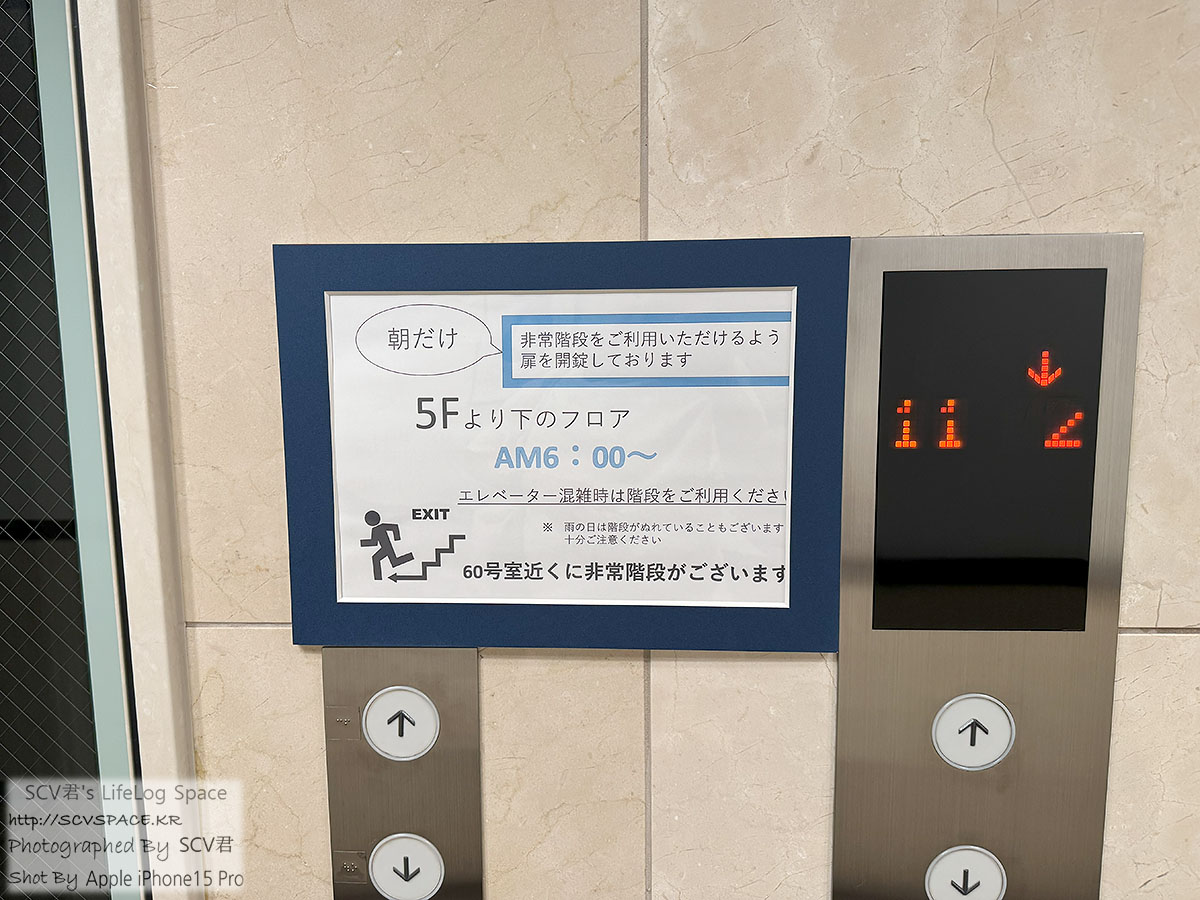 이건 잘 기억했다 아침에 쓰기로 하고, 곧 오는 엘리베이터를 탑니다 (당연히 지금은 잠겨있고)