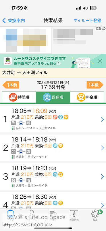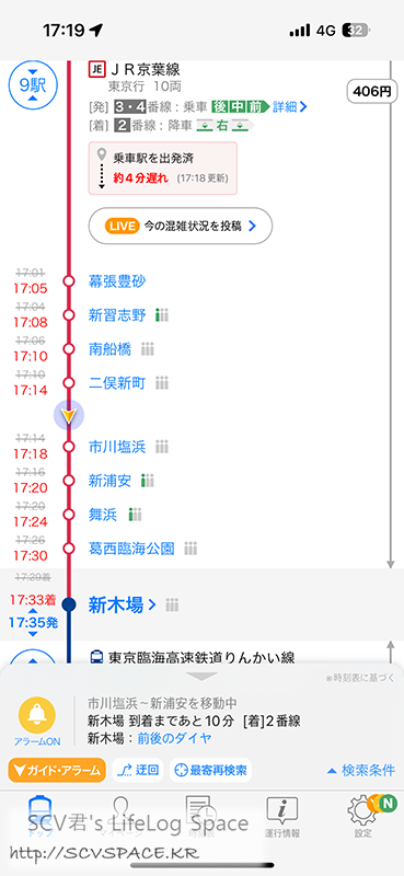 어제와 동일하게 린카이선 시나가와 시사이드역에서 탑승하고, 신키바역에서 케이요선으로 갈아타게 됩니다.