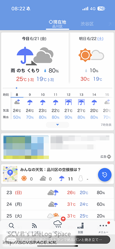 그래도 이 시기 일본은 항상 비오는게 낫죠. 어차피 비 안와도 습한데 비오면 온도라도 떨어지니까.