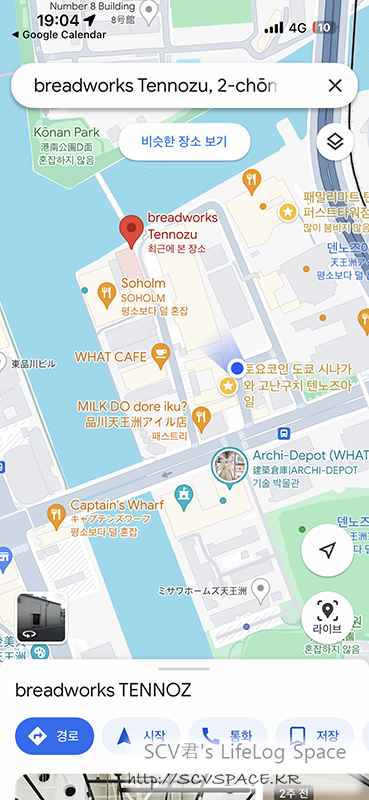 방금 제가 올라가 사진 찍었던 다리(天王洲ふれあい橋) 에서 내려와 가게로 들어갑니다. breadworks Tennozu[홈페이지, 구글지도, 타베로그]