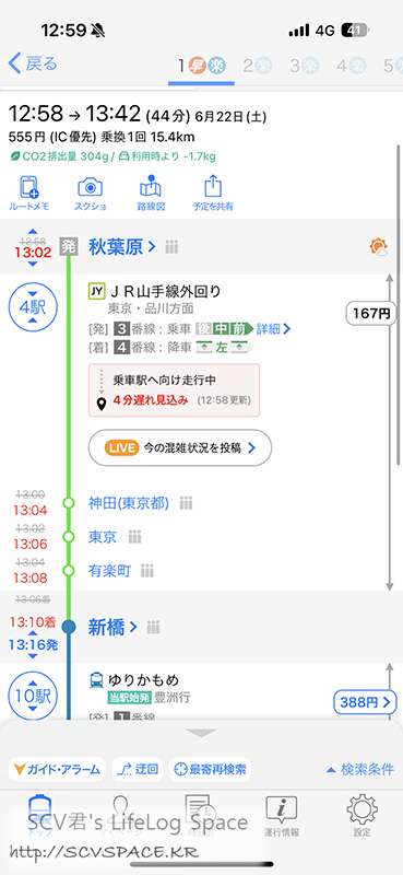 이동경로는 이렇습니다. 호텔 근처 역의 린카이선 대신 도쿄 모노레일 타고 야마노테선 환승.