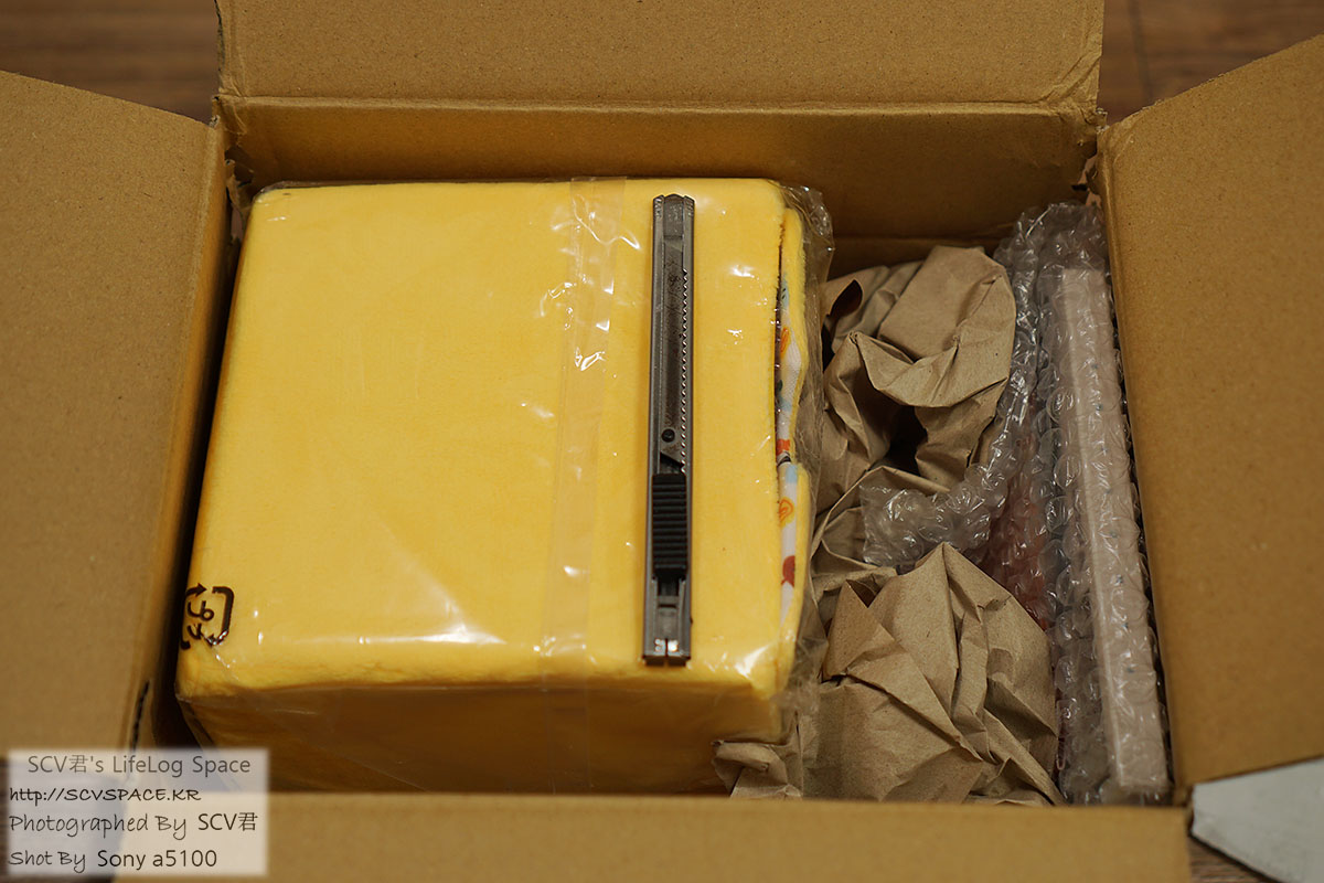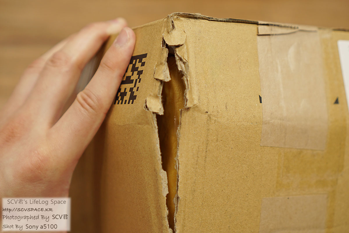 위에 무거운게 놓였었는지 박스도 안 깠는데 모서리가 다 터져 있더군요.