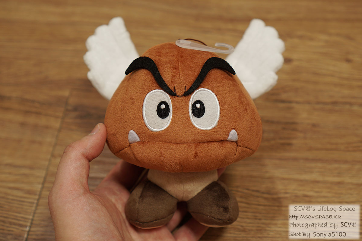 날개가 있긴 하지만 바로 위 가로세로높이 14Cm 정도의 물음표 블럭 인형에 잘 들어갈것 같아서 골랐었네요.