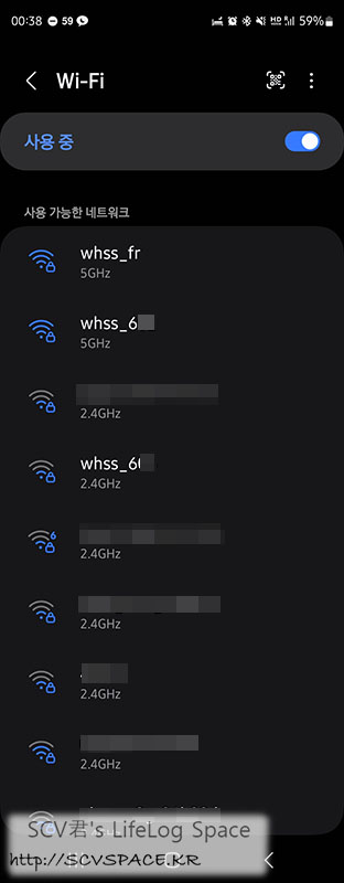 주변이 주택가라 2.4GHz 대역 AP가 유난히 많이 보입니다.
