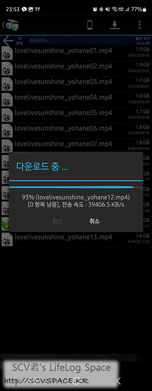 왼쪽이 공유기 변경전, 오른쪽이 공유기 변경후 간단하게 와이파이 속도측정을 겸해 파일을 다운로드 받아봅니다.