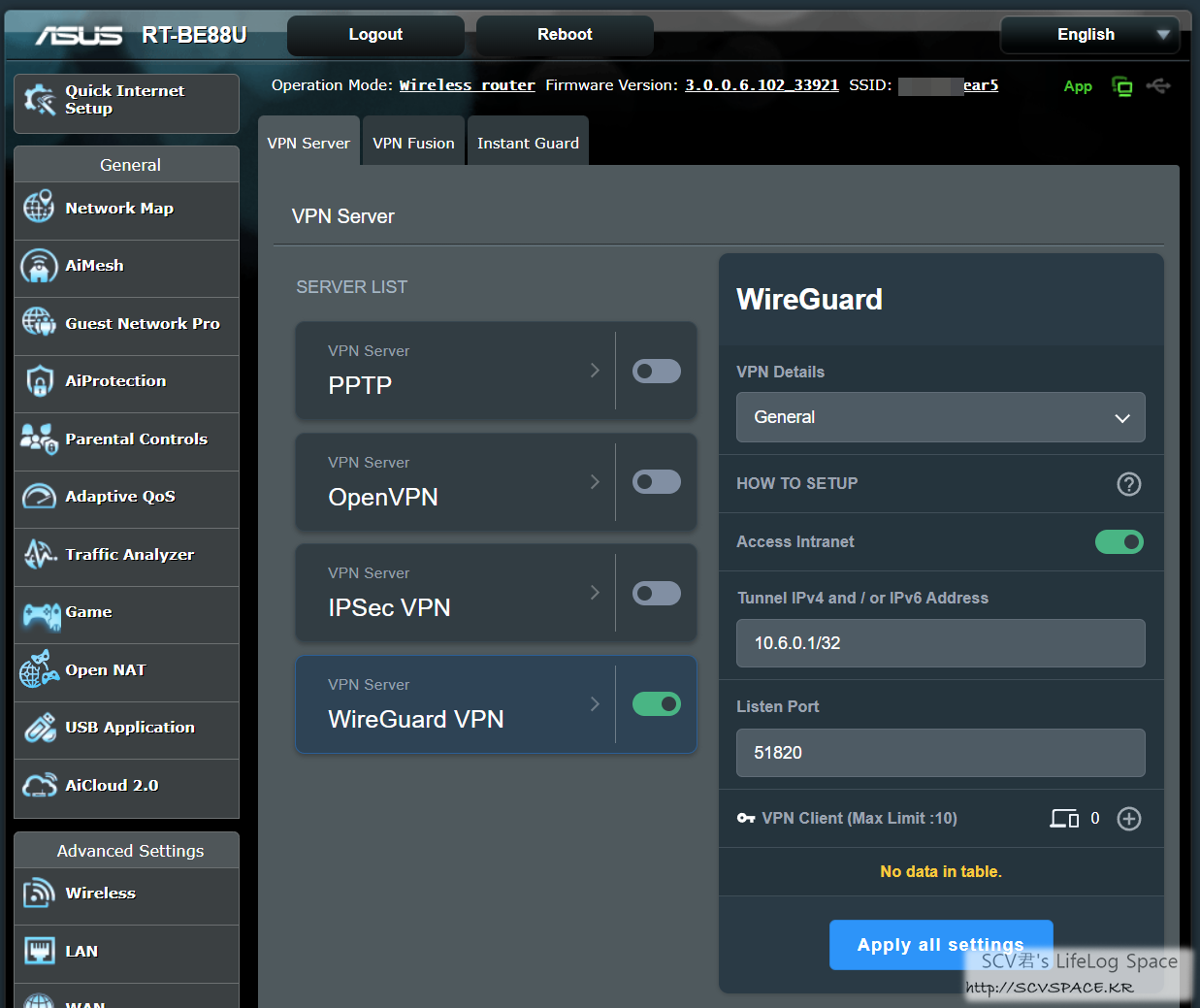 제 전전 공유기(ASUS 제품)도 전 공유기(커스텀 펌웨어가 asusWRT) 도 AsusWRT 기반이었다 보니 나름 익숙은 합니다.