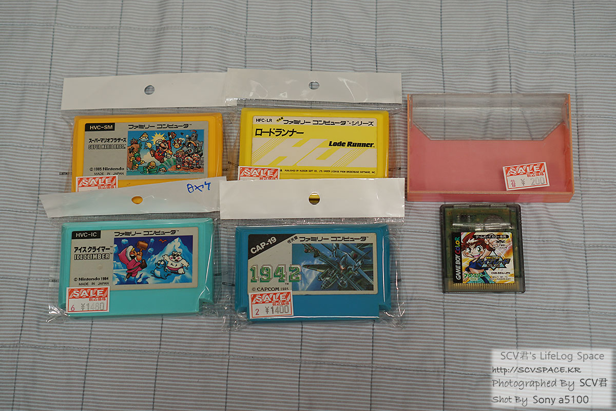 오른쪽의 보관 케이스나 게임보이 게임팩은 가게 앞 떨이 상자에 대충 담긴거라 100엔 200엔 수준.