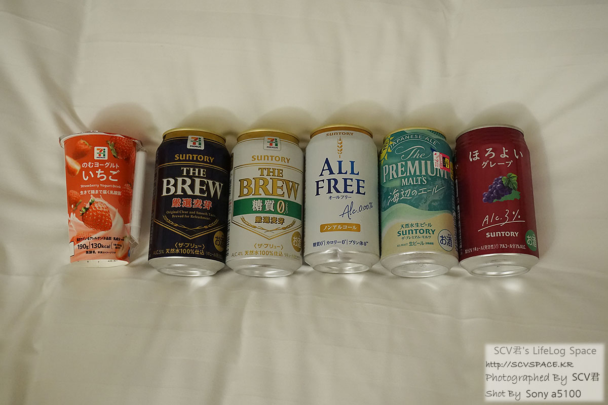 세븐일레븐에서 구입해서 세븐일레븐 PB 상품도 포함되었네요. 어쩌다 보니 브랜드는 전부 산토리지만.