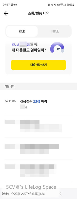 며칠뒤에 보니 신용등급이 살짝 떨어졌더군요.