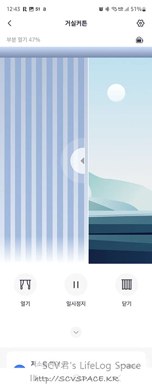 (난 55% 위치까지 커튼을 열고 싶은데, 애플리케이션 메인화면에서는 끌어다 놓고 기기가 움직여야 바로 위에 48% 이런식으로 위치정보가 뜹니다)