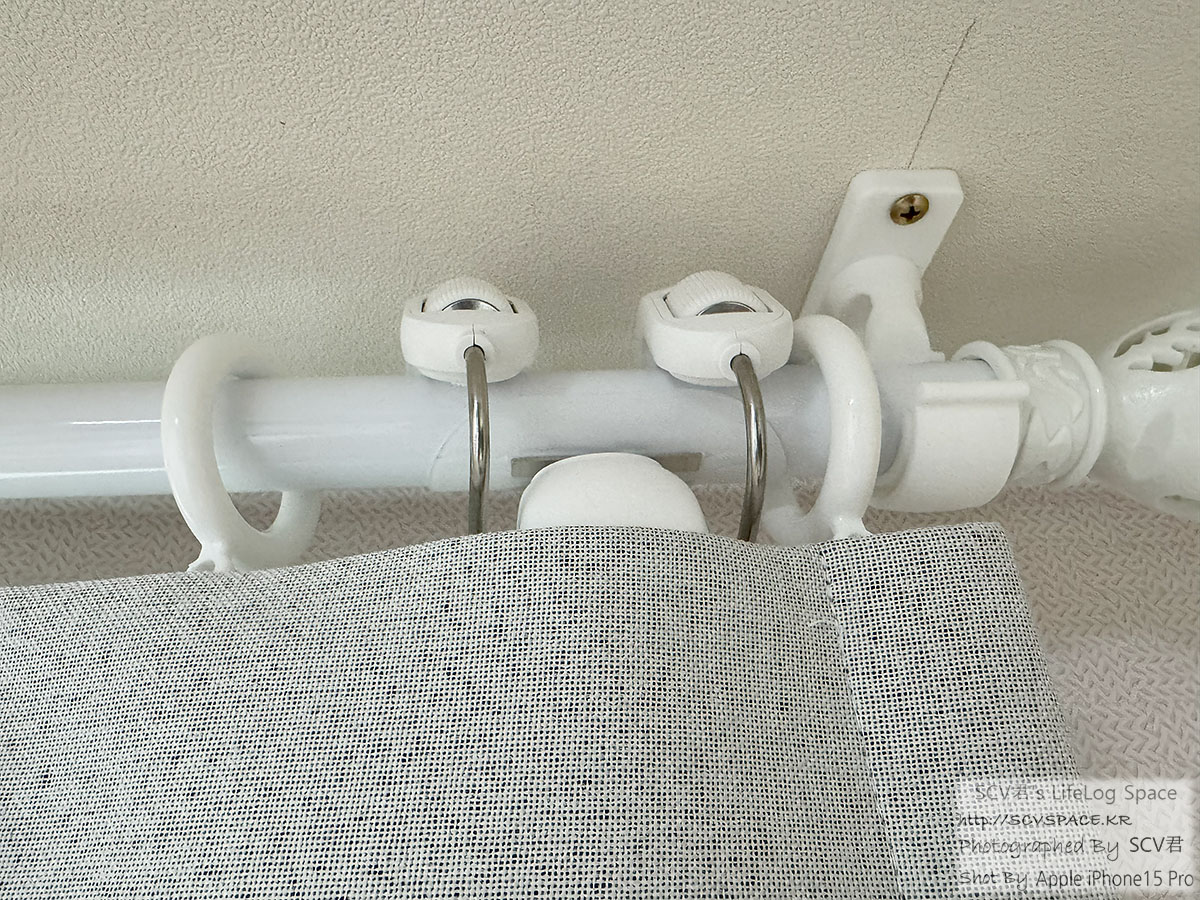 커튼링+커튼봉 커튼을 장착해서 커튼을 치고 걷을 때 들이는 힘도 적은 편이구요.