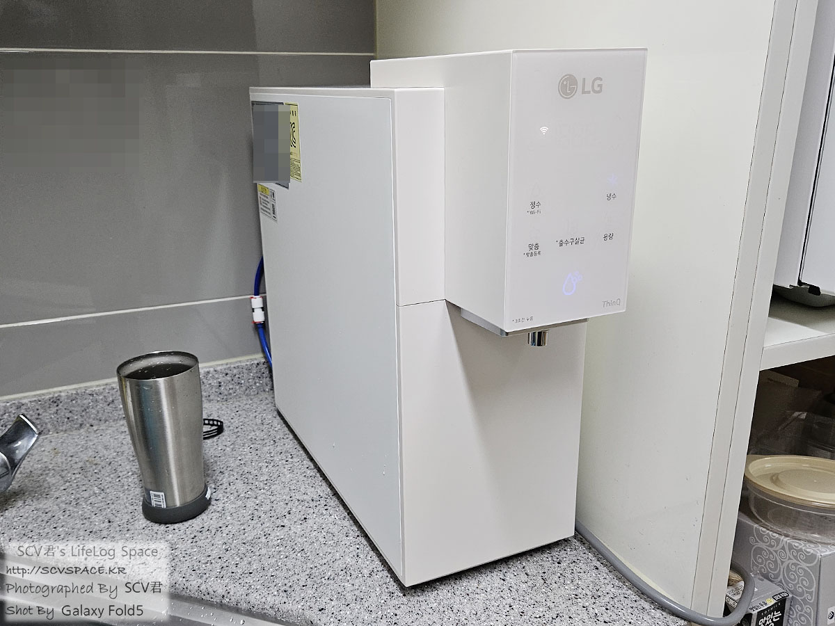 싱크대에 이미 호스용 구멍이 뚫려있어 작업시간이 길진 읺았고, 각진 공간 [딱 봐도 정수기 자리] 이 딱 있어서 거기 설치했네요.