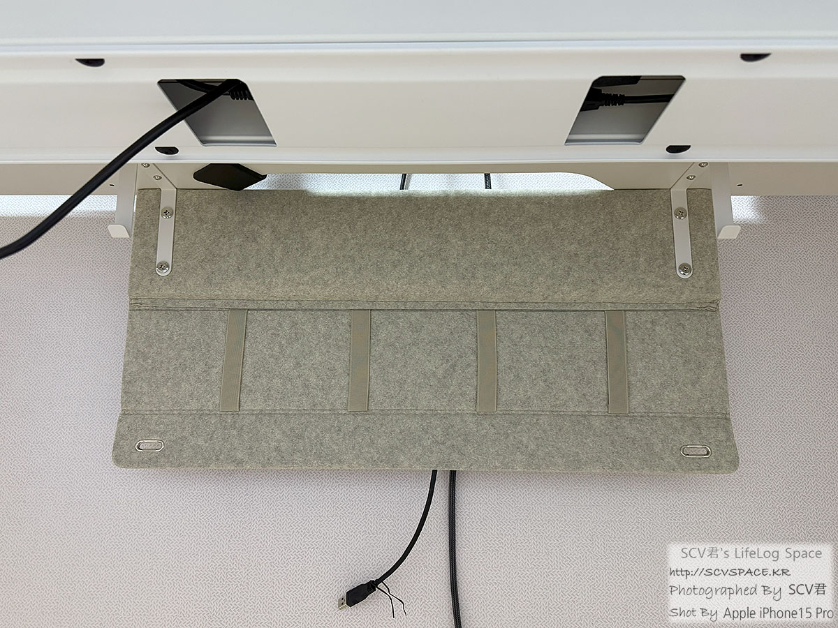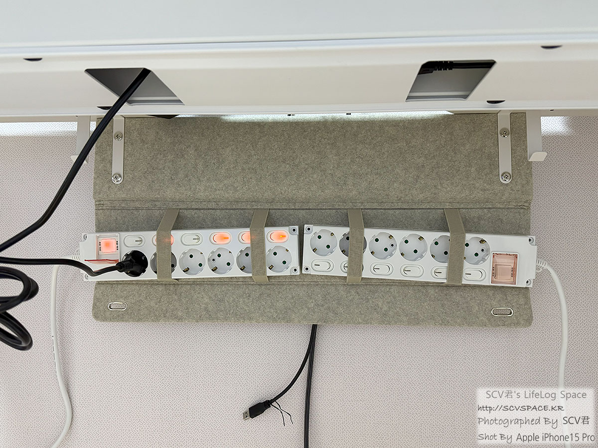 책상이 높이조정이 되기 때문에 그에 맞는 케이블을 추가로 구입했지만 (스탠딩 작업용 책상높이 110Cm 셋팅 가정) 확실히 그냥 스탠드 놓을때보단 공간 확보가 되서 좋네요.