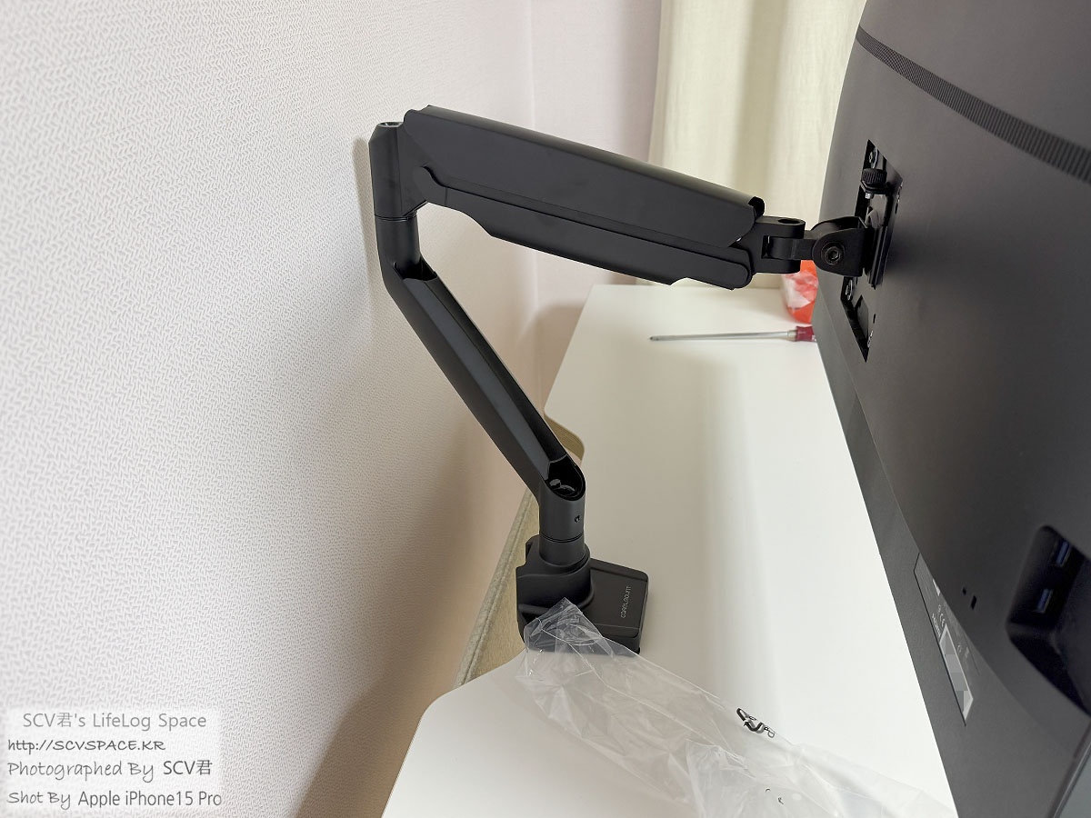 저렴한 제품들은 시간이 지날수록 모니터가 쳐지기도 한다는 모양이지만, 이건 모니터암의 나사로 완력 조정도 되고.. 오래 불편하지 않게 쓸 수 있지 않을지.