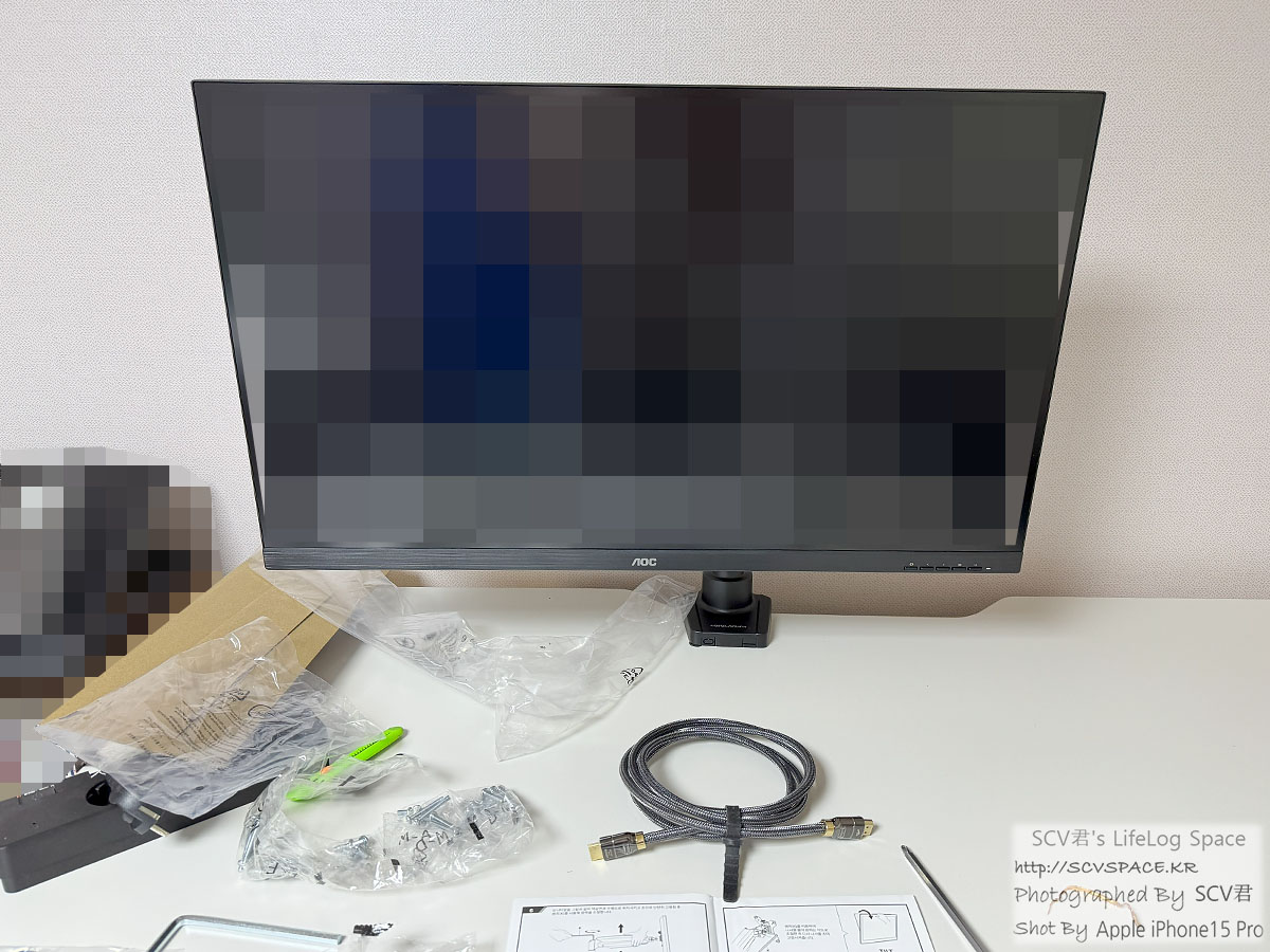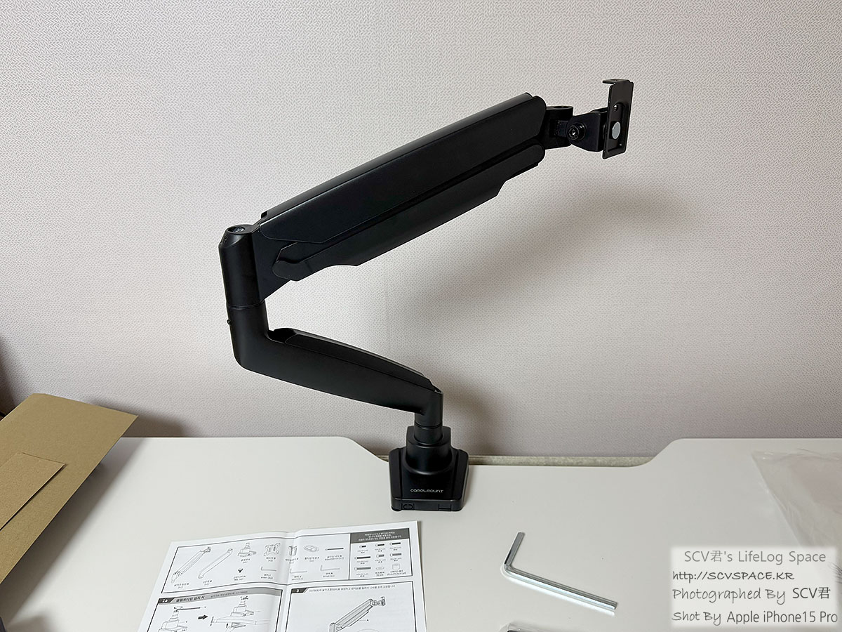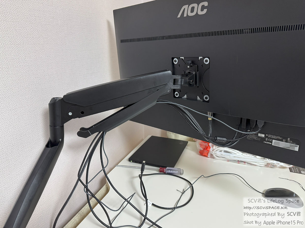 이거 조정된 이후에는, 설명서 보면서 모니터암 완력을 조정하고 케이블 정리까지 끝.