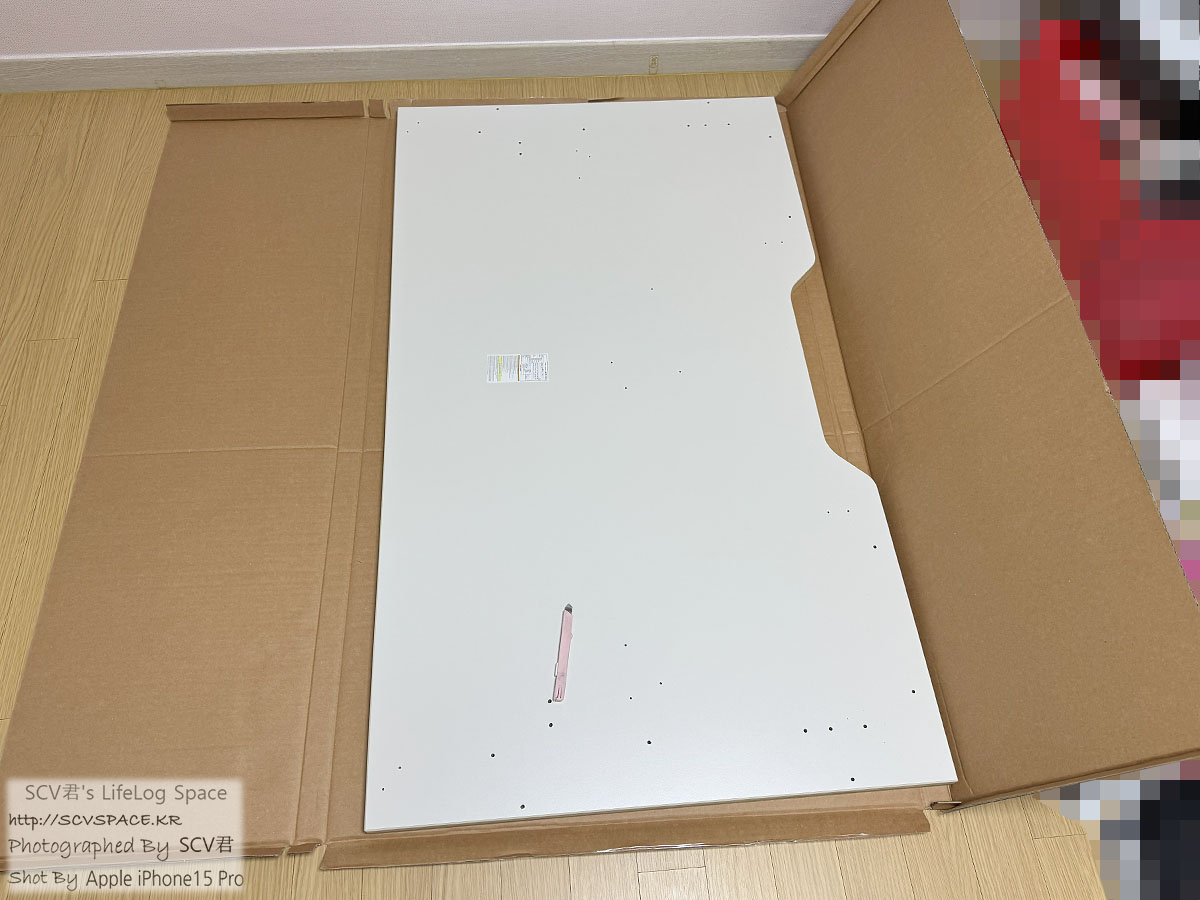 위와 같이 상판을 제일 먼저 박스 오픈하고, 상판에 프레임과 컨트롤부(모터 및 배선, 중앙 컨트롤 모듈 등)를 붙혀가는 느낌.