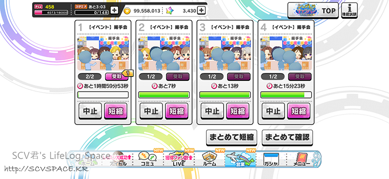 데레스테의 기능 변경 중에서 제일 크게 와닿는건 역시 영업기능 개편이네요. 개편이랄까 거의 격변 수준인..