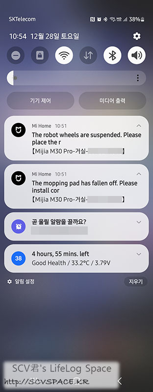 저는 청소 끝나고 걸레 빤 다음에 걸레 말리는 시간을 기본 2시간에서 3시간으로 변경해서 쓰고 있네요. 이런거.