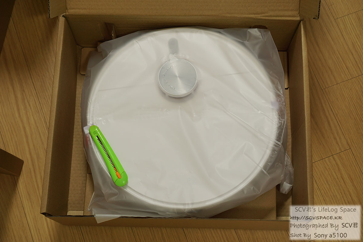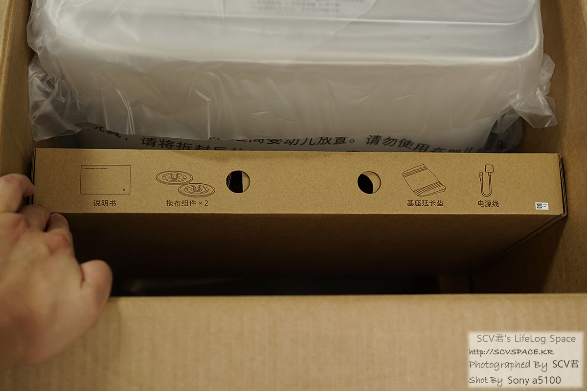 그리고 한단계 더 걷어내면, 저렇게 스테이션 윗부분과 옆쪽으로 별도 포장된 로봇청소기 본체가 보이고,